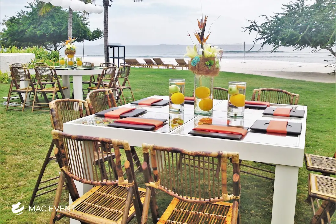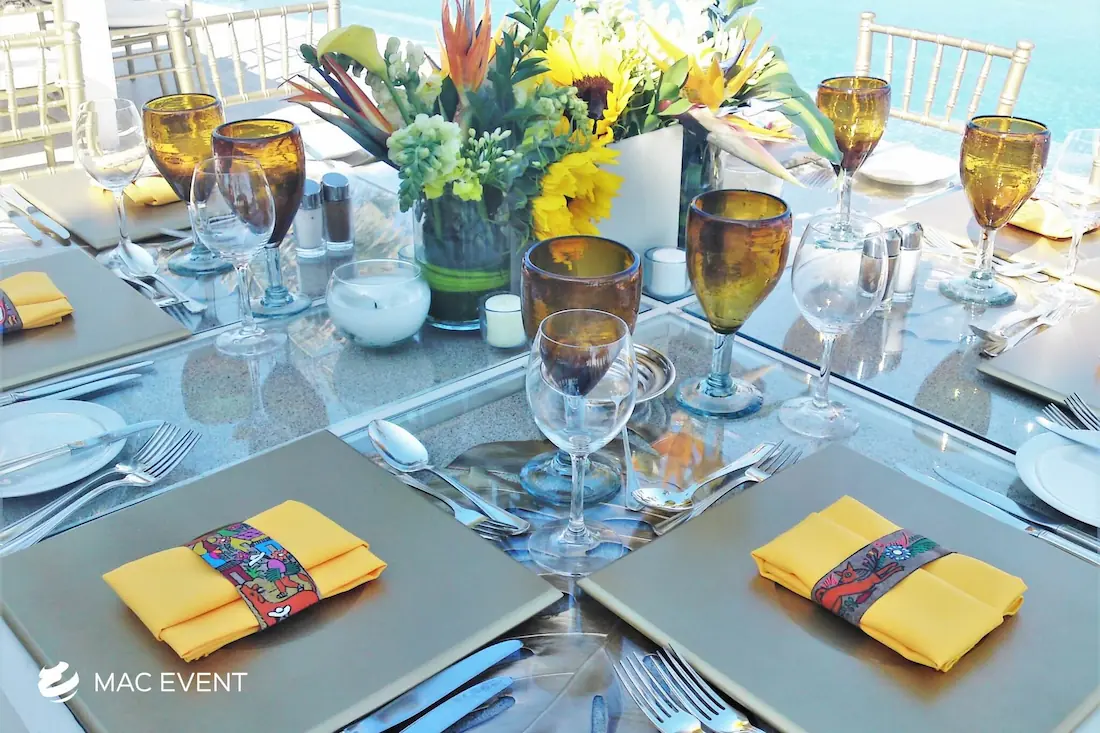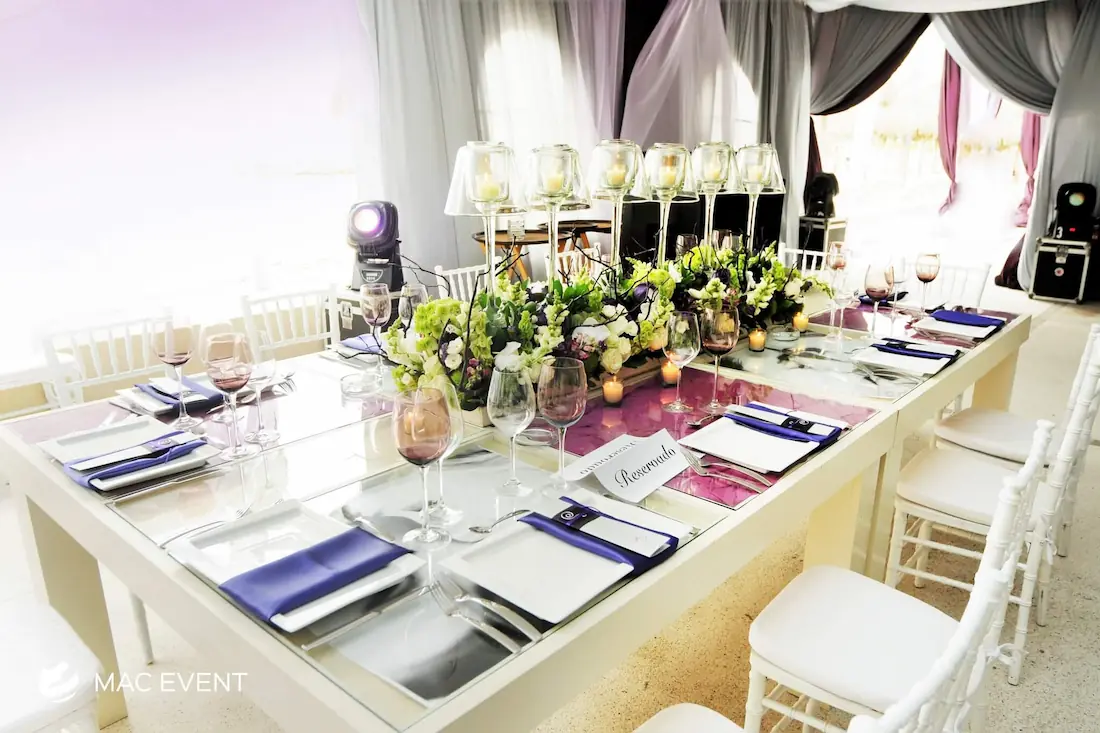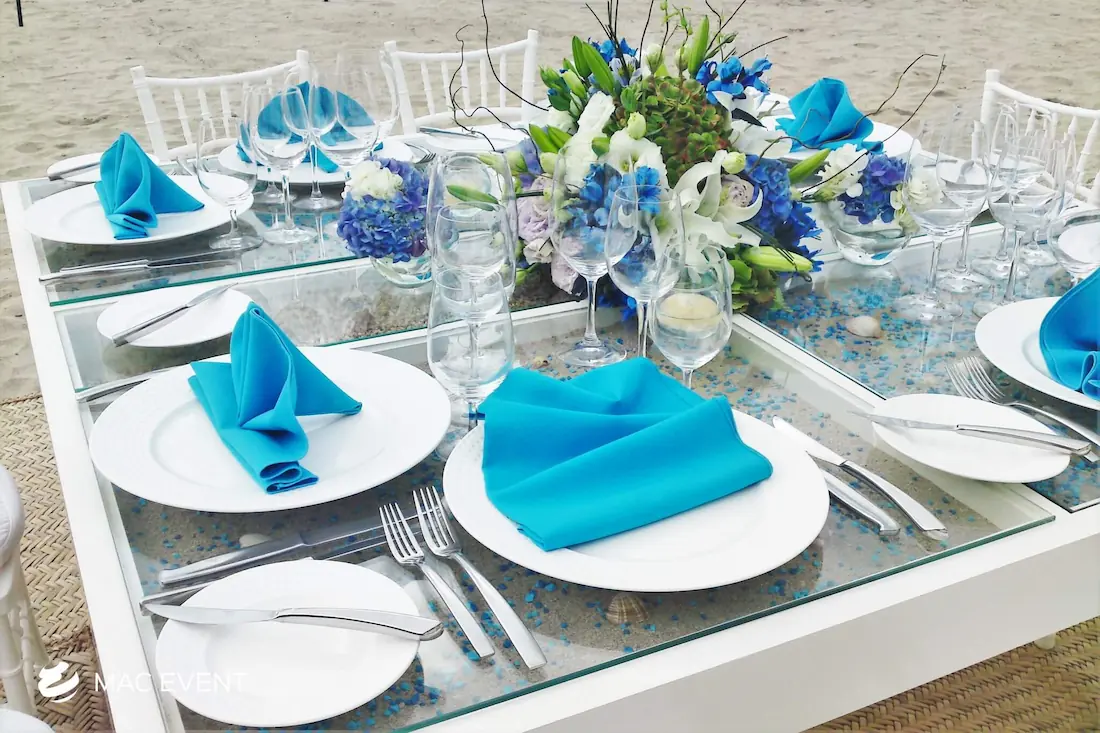 The wooden glass table combines natural elegance with a modern touch, making it perfect for weddings, parties, and corporate events in Riviera Maya. Its wooden frame adds warmth, while the glass top provides a sleek and sophisticated finish that complements any décor style. This event table rental works beautifully for dining areas, sweetheart setups, or display tables, creating a refined and inviting look. Renting wooden glass tables in Riviera Maya ensures a polished presentation with durability and style. For an event that blends rustic charm with contemporary design, the wooden glass table is an exceptional choice.